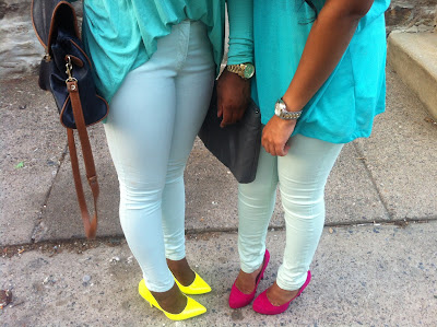 Now that were older, and living together our relationship is better and our style is so similar! Its very often that I buy an item that she loves, so she goes and buy the same thing. So yesterday we decided to dress exactly alike! Different pieces, but the same color. It was so much fun, even funnier having people look at us weird as we were strolling through the city.